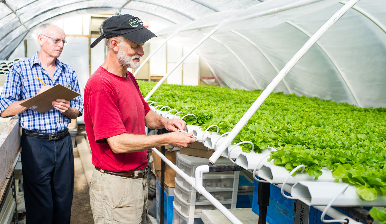 Our lettuces are produced both aquaponically and hydroponically, without the use of pesticides, fungicides, or herbicides, in a winterized greenhouse. This enables us to grow all year round in a simulated outdoor growing environment, and virtually eliminates the possibility of contamination from pathogens in the environment.